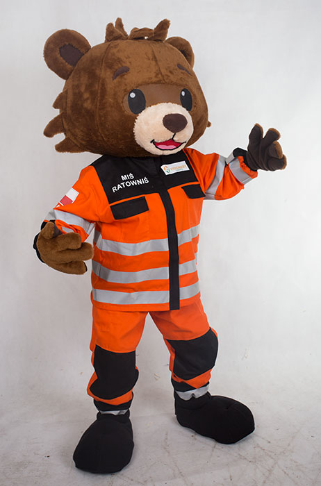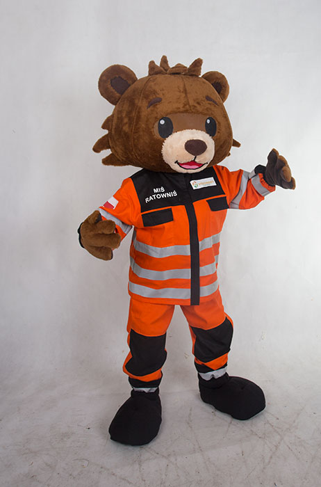 Chodząca maskotka szyta na zamówienie Miś Ratownik